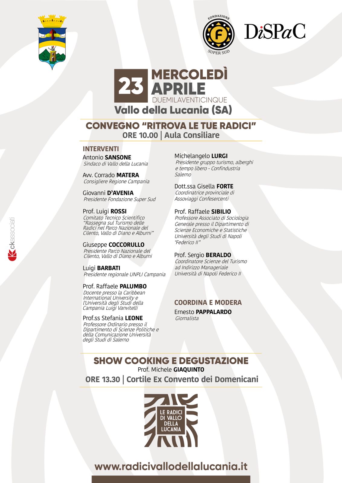 Il Festival, promosso nell’ambito del progetto “Le Radici di Vallo della Lucania”, si propone di dare voce a chi è partito, a chi è tornato, e a chi non ha mai smesso di sentirsi parte di questo territorio. È un’iniziativa che unisce convegni, confronti, testimonianze e attività ludico-didattiche, con uno sguardo particolare rivolto al tema del turismo delle radici, della tornanza e della sostenibilità.
